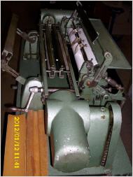 Fächer- und Einstreichmaschine mit 3 Kunststoffwalzen und Abstreichwelle für stufenlos regulierbaren Leimauftrag,